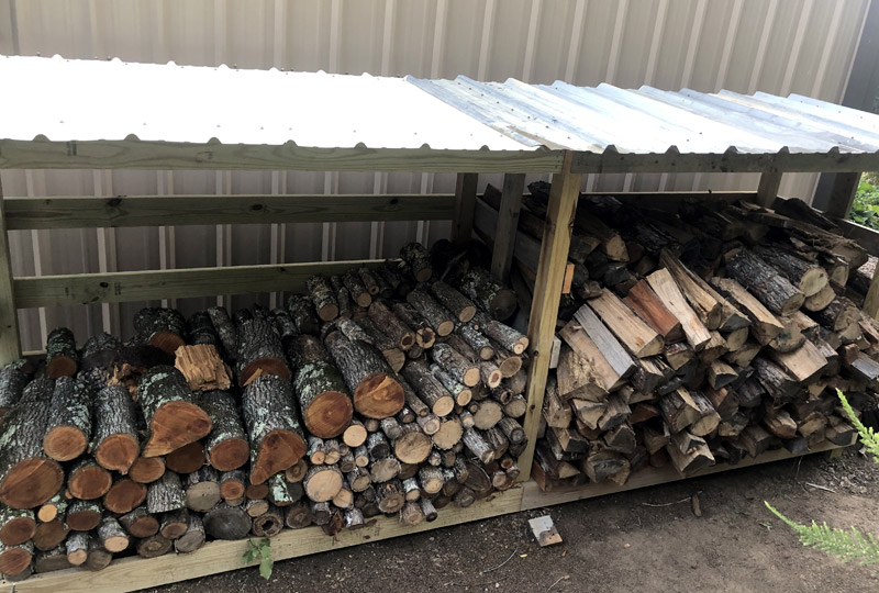 We purchased a load of wood from a local vendor and also received a generous amount from a neighbor who has been pruning trees on his property. Little by little, the racks are filling up.