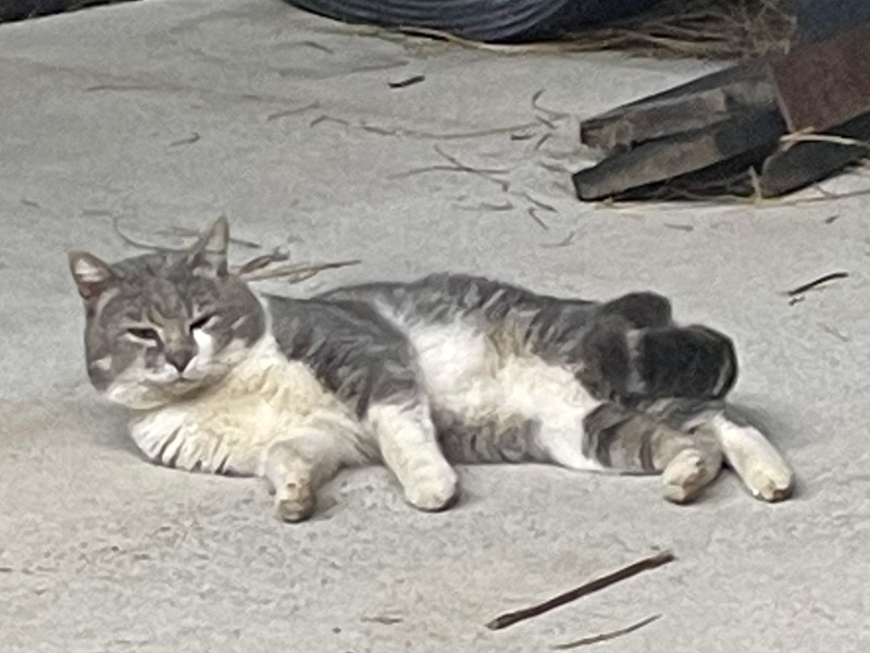 The small, skinny cat we first noticed hanging around has officially decided this place is home. She’s no longer the scraggly little thing we met weeks ago. She’s filled out, looks healthier, and—most telling of all—she now lets us pet her. That’s usually the moment you realize you’ve been adopted, not the other way around.